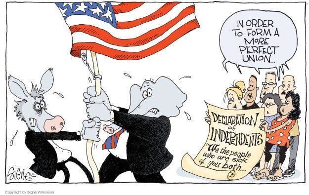 Why do we have a proportional House but an equally distributed Senate? Why a strong national and state government? Even our political parties served as coalition builders where factions disagreed but came together in compromise to form a governing majority.